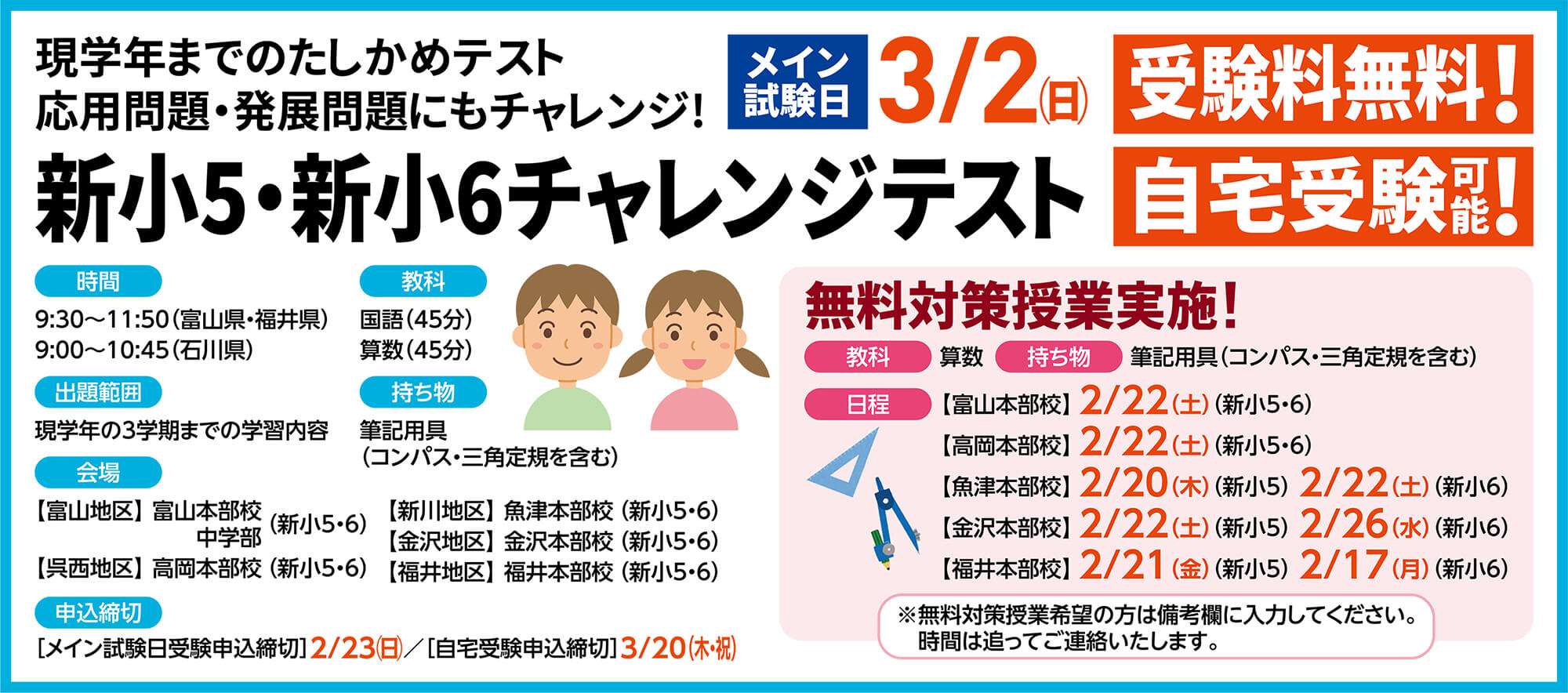 ※富山本部校のハイレベルクラスの推薦資格試験を兼ねております。