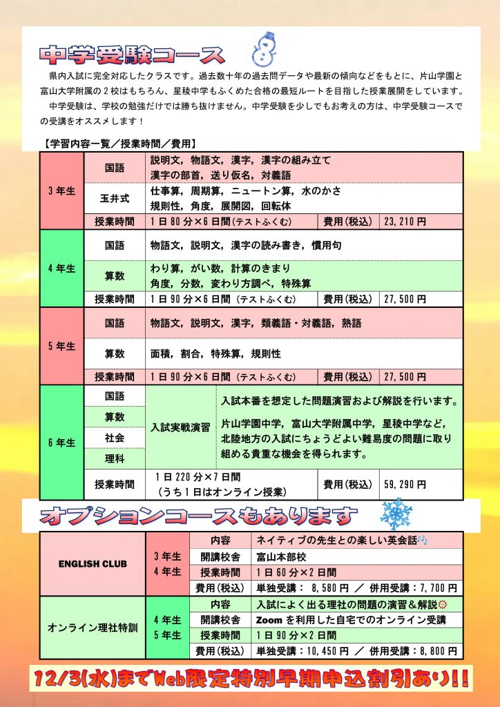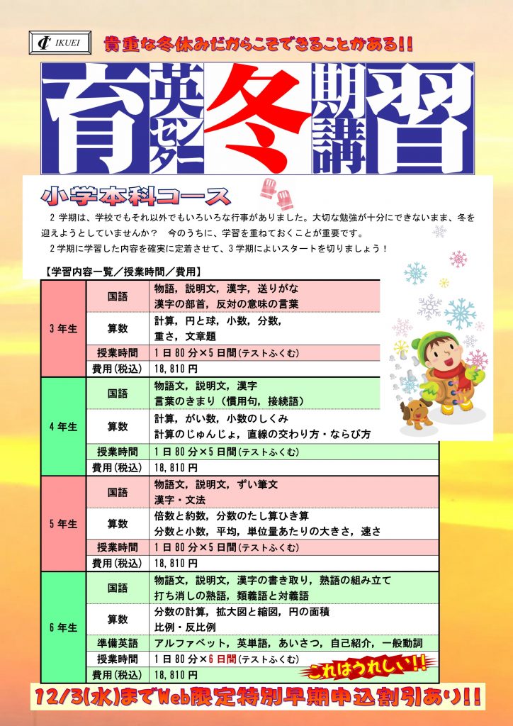 【小3~小6】冬期講習のご案内