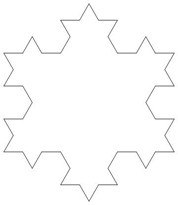 ざっくり言うと、正三角形から始めて、各辺を3等分した真ん中の部分に山を追加していく操作を無限に続けたものです。