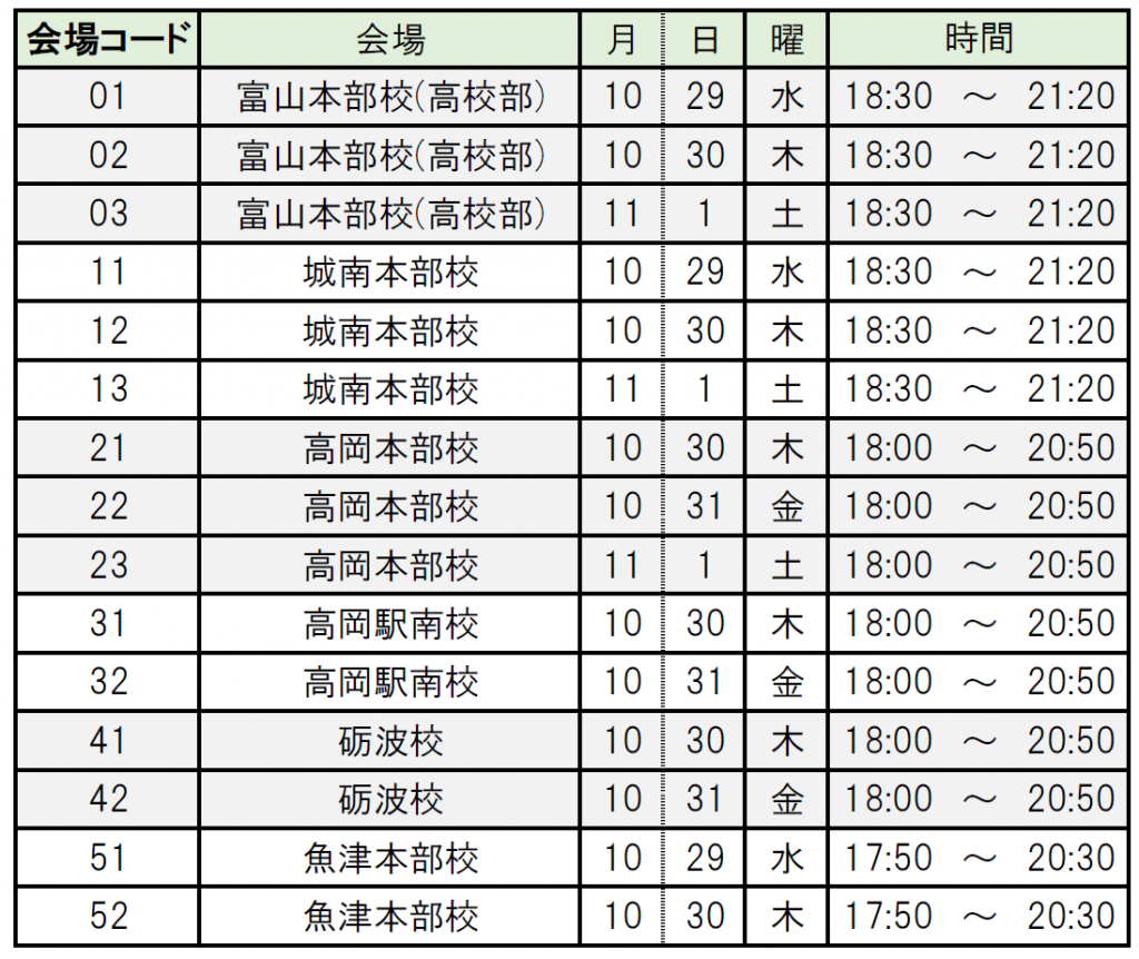 【会場番号・実施会場・日時】