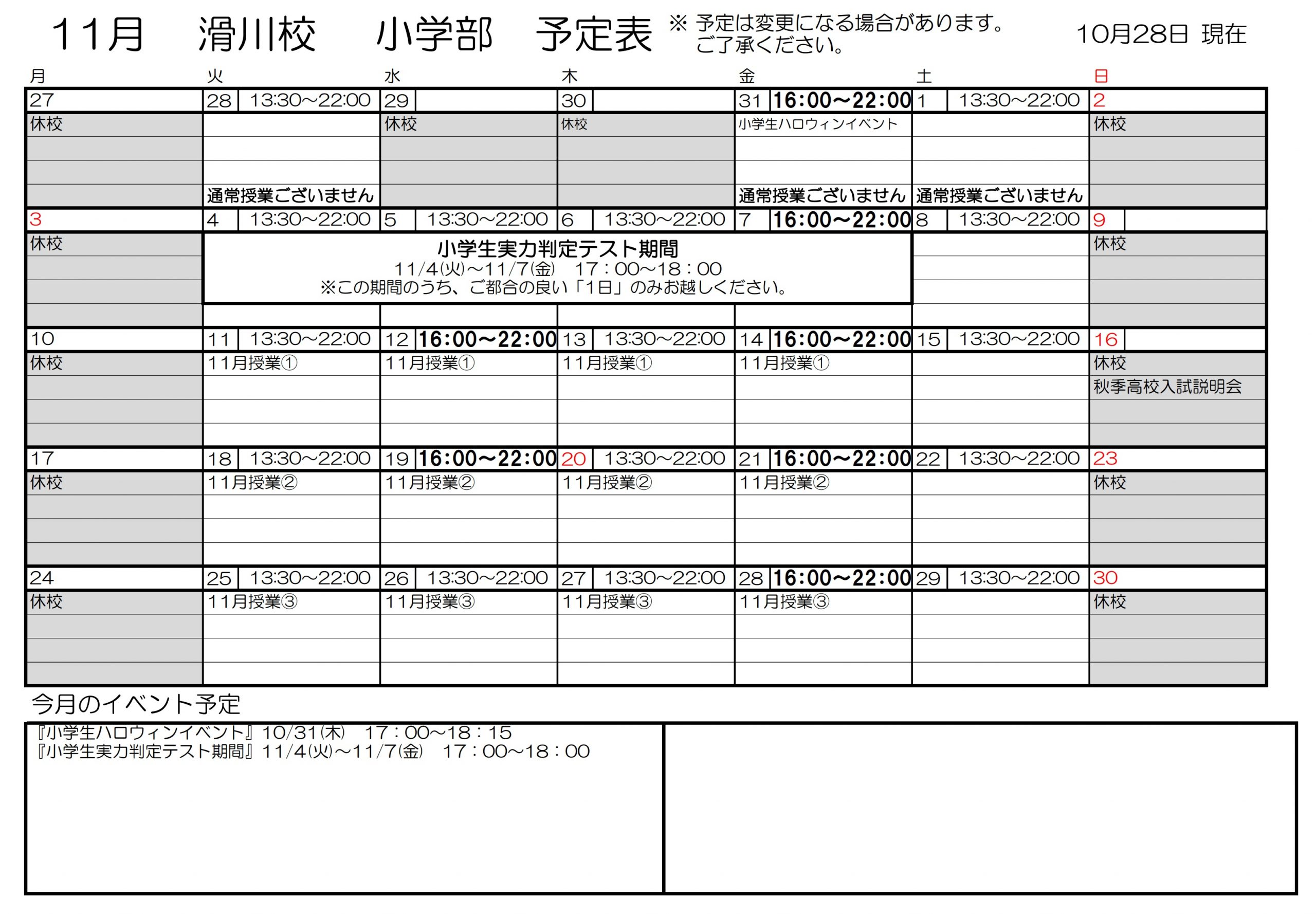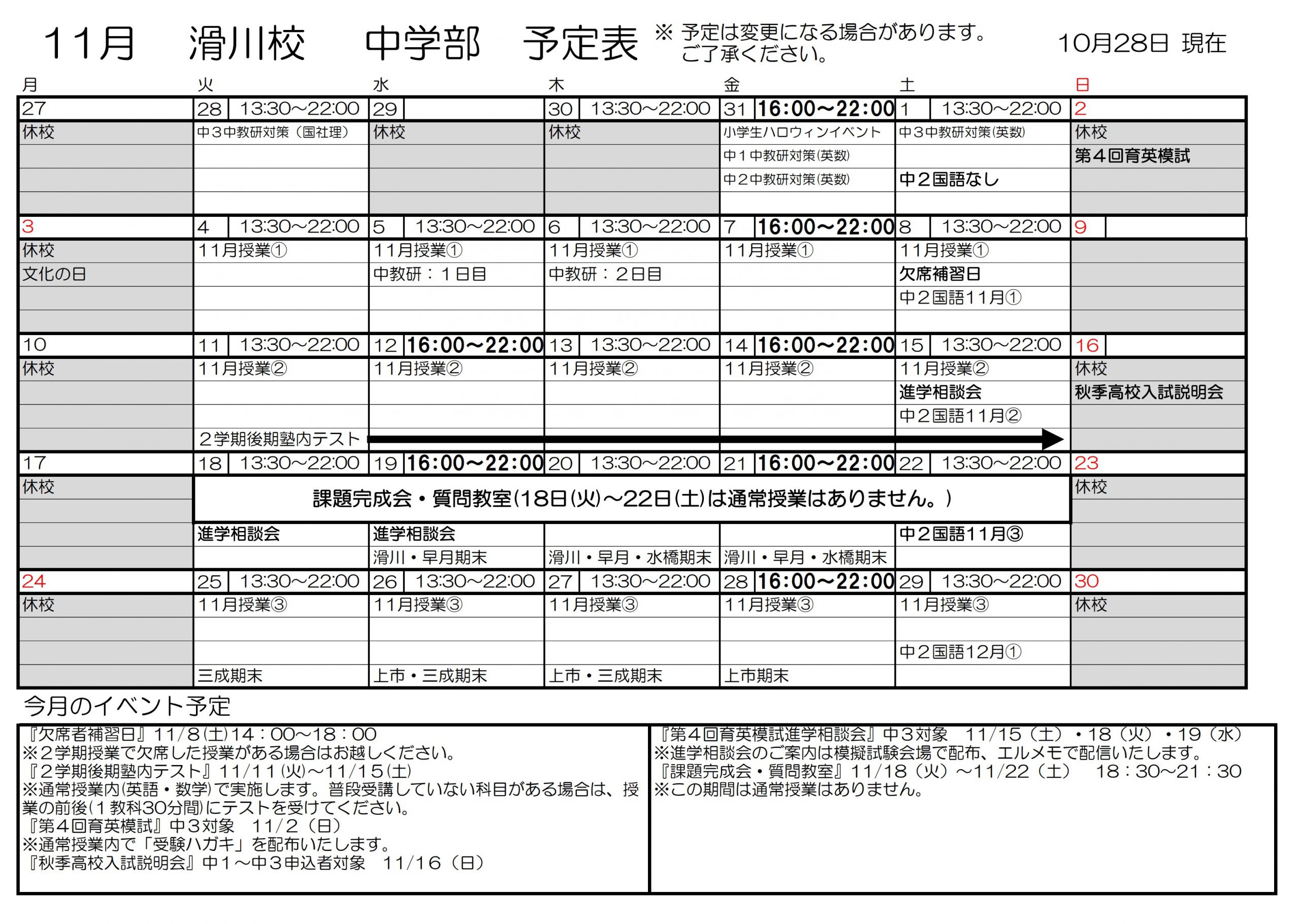 【滑川校】11月・12月ご入塾のご案内