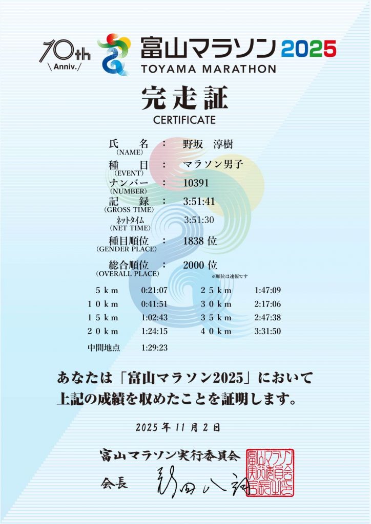 2時間58分32秒の自己ベストを持つ私としては,50分以上遅れる大失敗のレースでした。。。