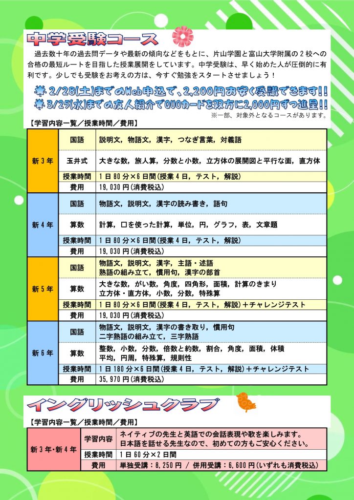 高岡本部校の春期講習では、学年ごとに富山県の中学受験を突破するために必要な第一歩をお伝えします!