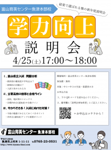 魚津本部校では新年度【学力向上説明会】を実施します!