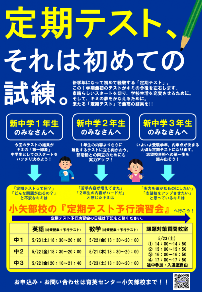 GW後は運動会・体育大会といった行事もありますが、その後はいよいよ中学生の皆さんにとっては最初の定期テストである中間テストが行われます。