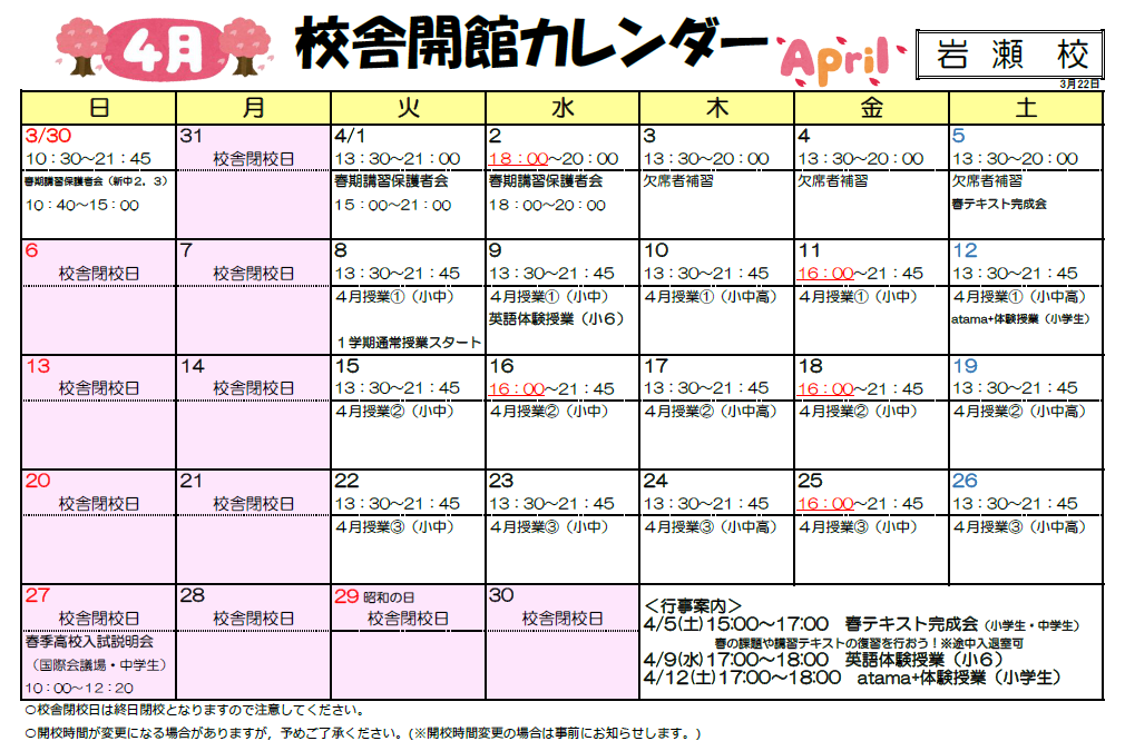 2学期時間割はコチラから→【岩瀬校 2学期時間割】