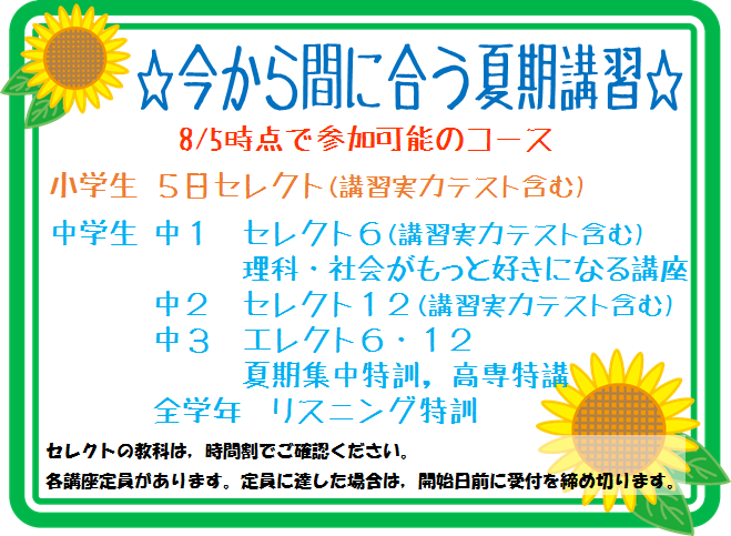 中学1年生・2年生:校舎受講…英語R&W・数学