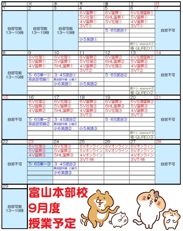 多くの生徒が通ってくれているが故に,各学年複数のクラスが設定されています。授業に欠席しても,他の曜日に振り替えることができます♪