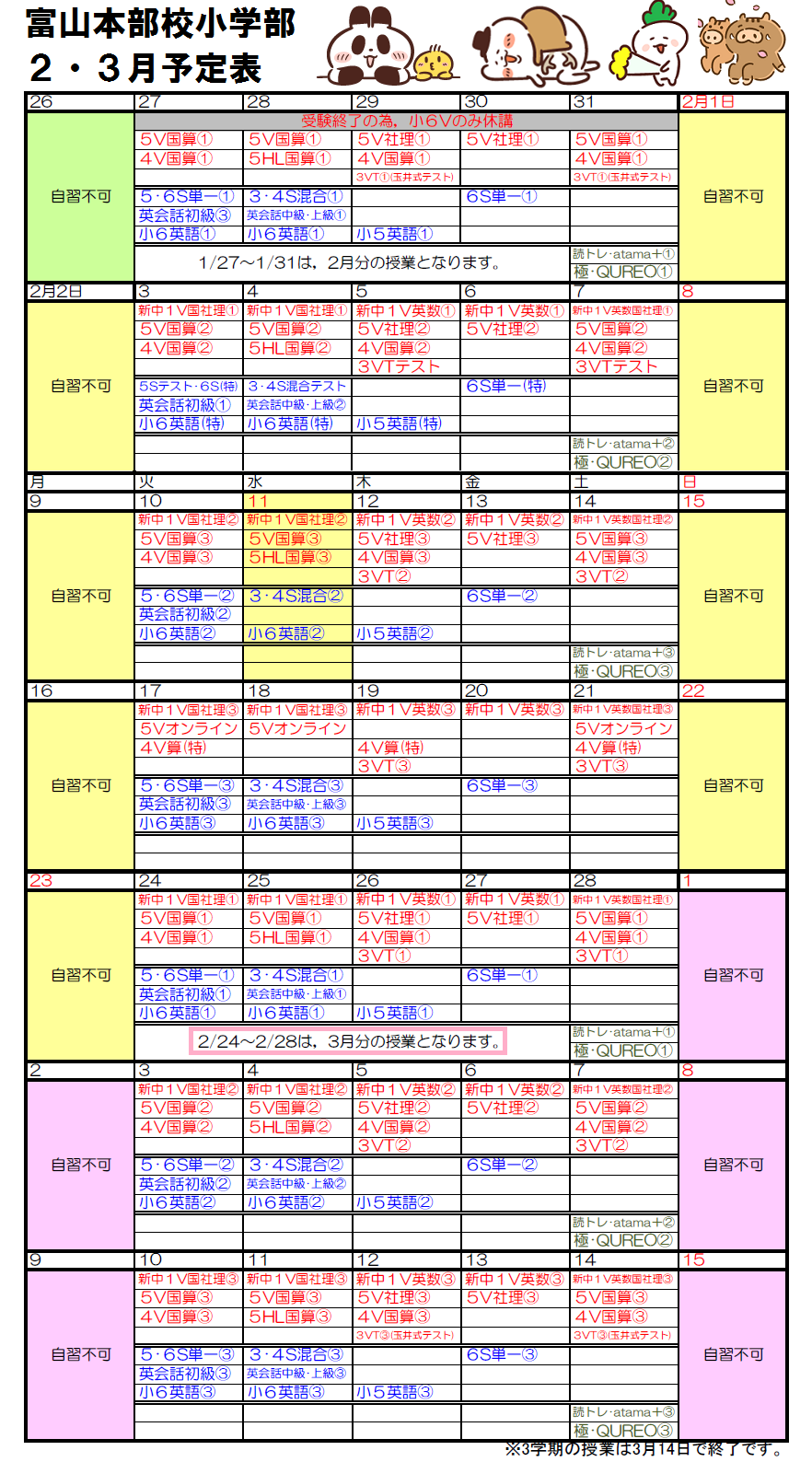 富山本部校小学部では,様々なコースで