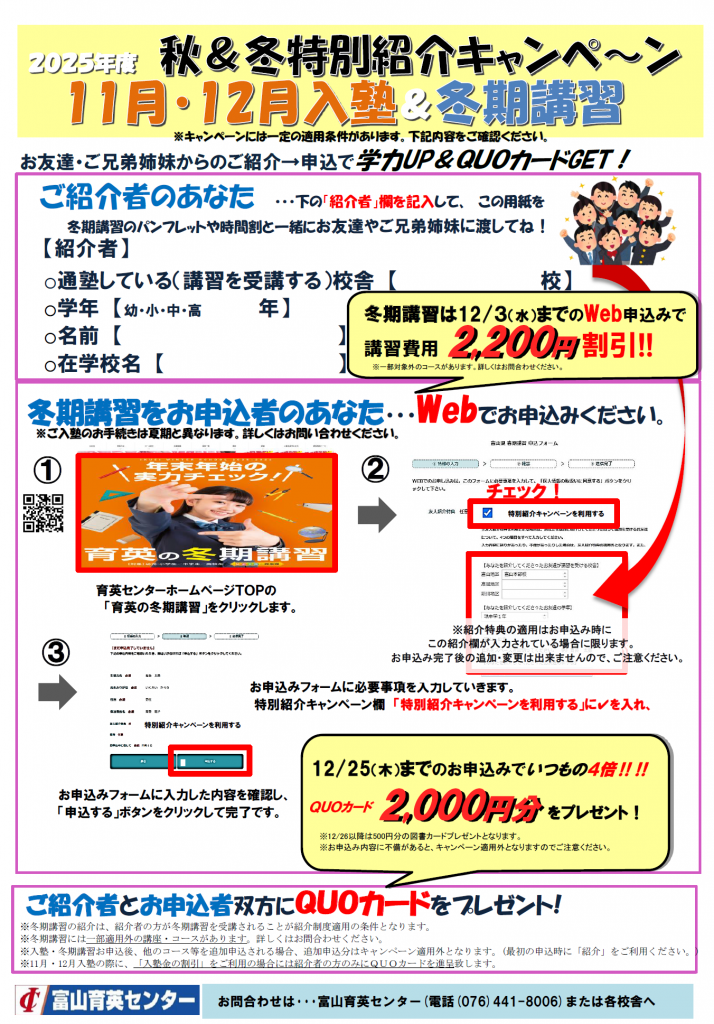 冬期講習&大晦日正月特訓 ☆Web早割&特別紹介キャンペーン実施中☆