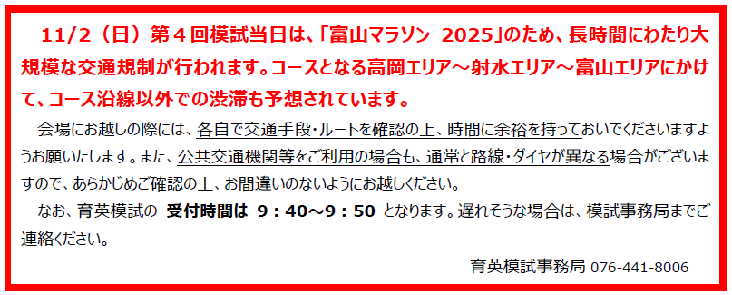 [令和7年度]第4回富山県高校入試育英模試を受験される皆さんへ