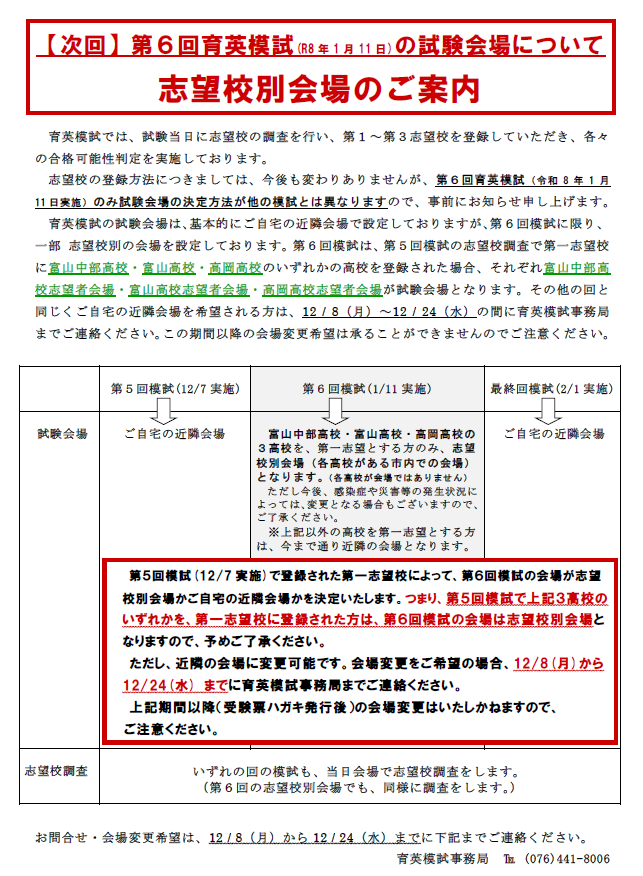 [令和7年度]第5回富山県高校入試育英模試を受験される皆さんへ